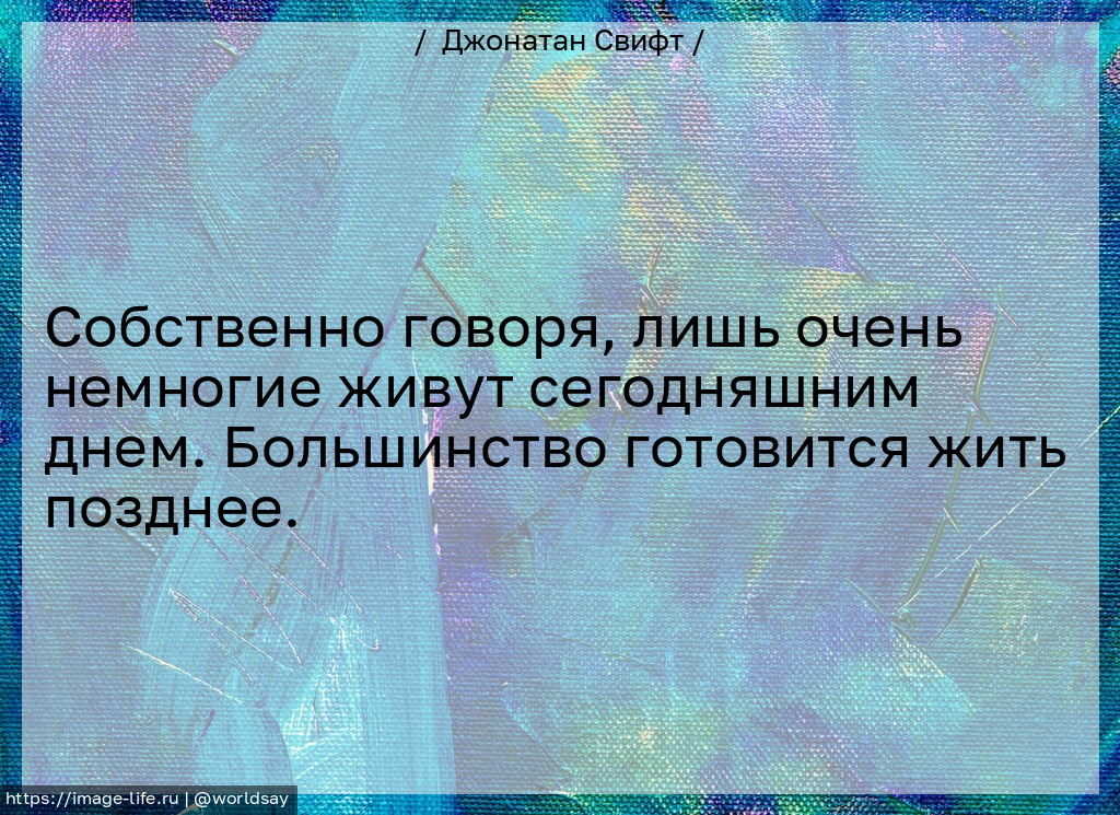 Собственно говоря, лишь очень немногие живут сегодняшним днем. Большинство готовится жить позднее.