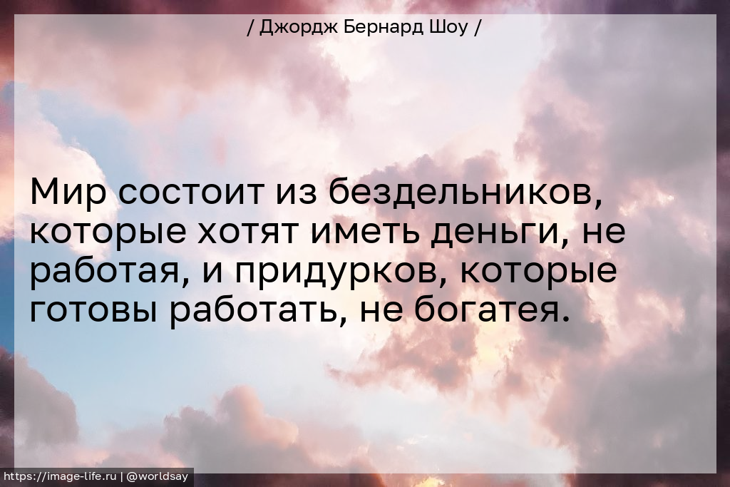 Мир состоит из бездельников, которые хотят иметь деньги, не работая, и придурков, которые готовы работать, не богатея.