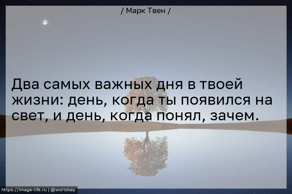 Два самых важных дня в твоей жизни: день, когда ты появился на свет, и день, когда понял, зачем.