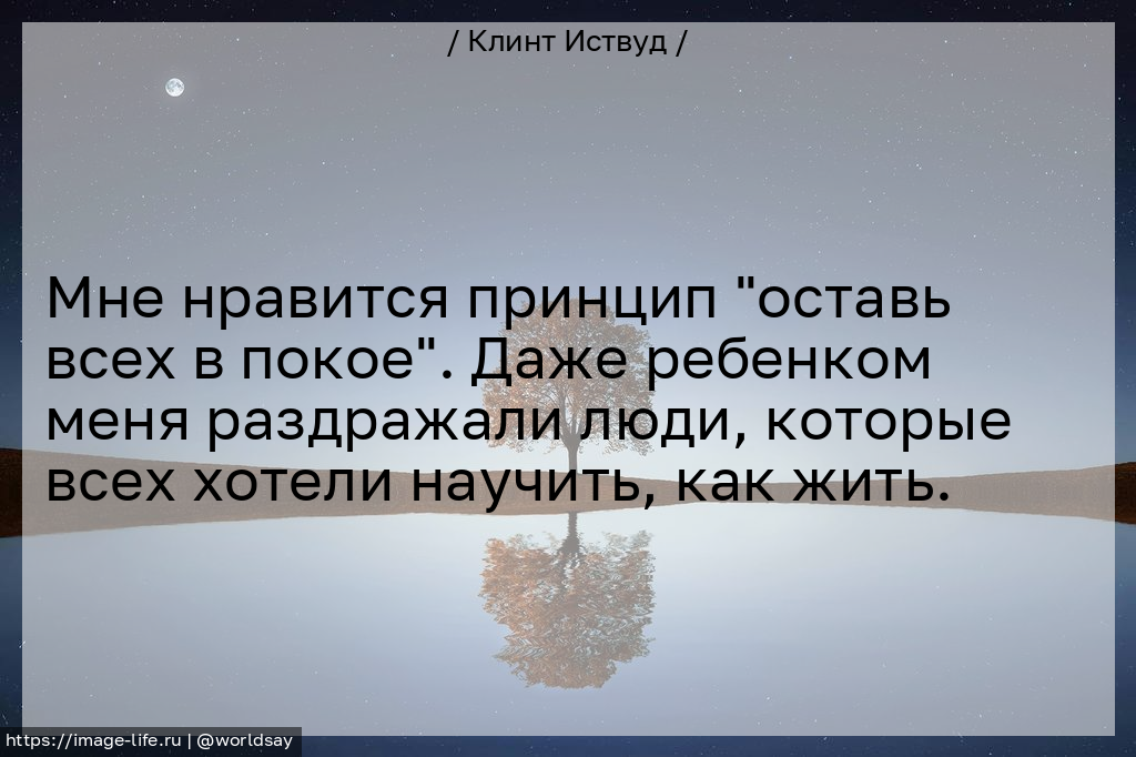 Мне нравится принцип "оставь всех в покое". Даже ребенком меня раздражали люди, которые всех хотели научить, как жить.